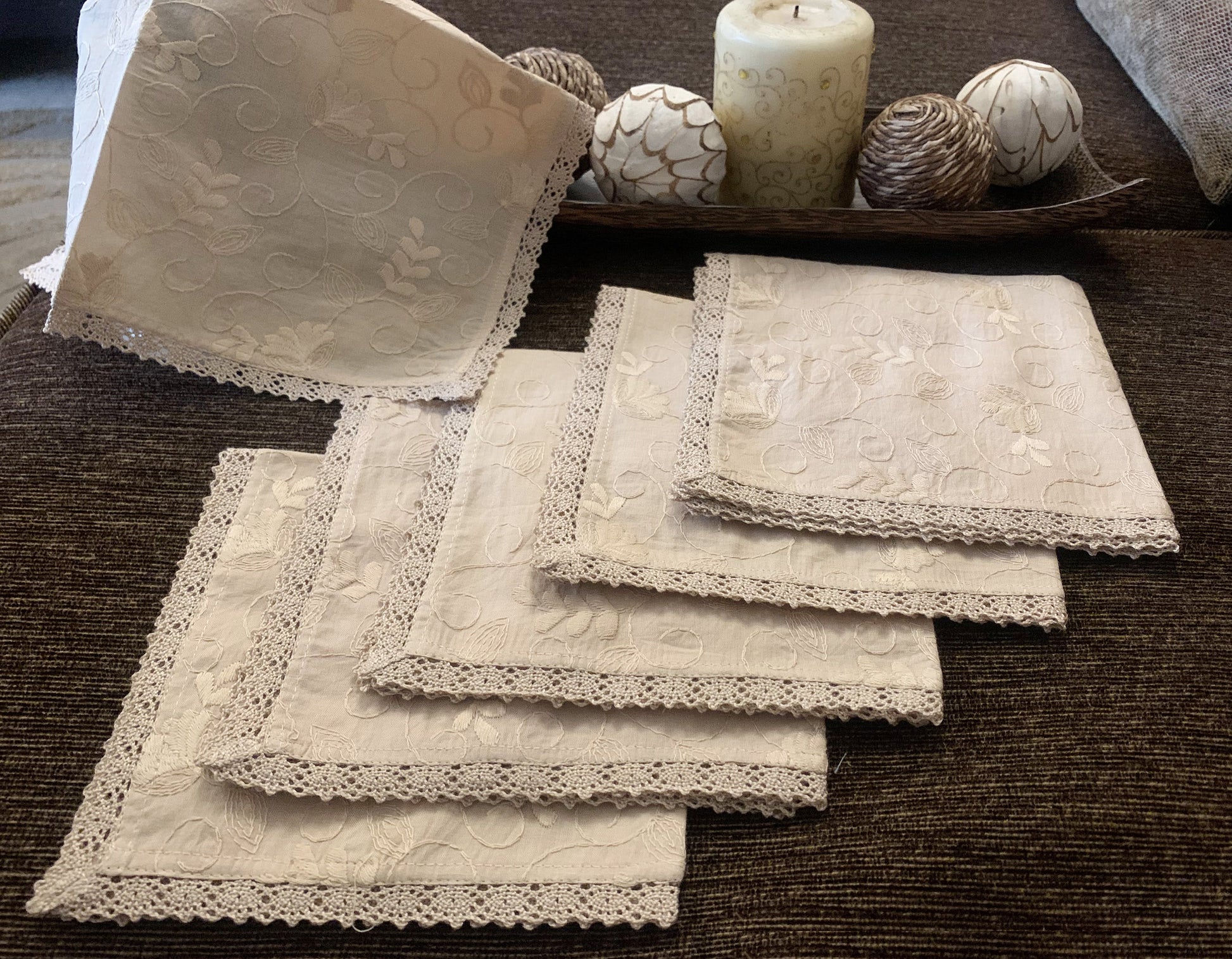 PRODUCT DESCRIPTION: These chic schiffli embroidered napkins with delicate lacy edgings give a formal touch to any table setting.