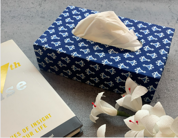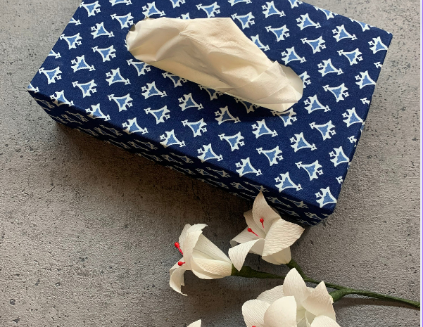 Made with paperboard and hand block printed cotton fabric, this tissue box holder is a graceful yet practical accessory for your drawing room or powder room. This product also makes for a great gifting item.