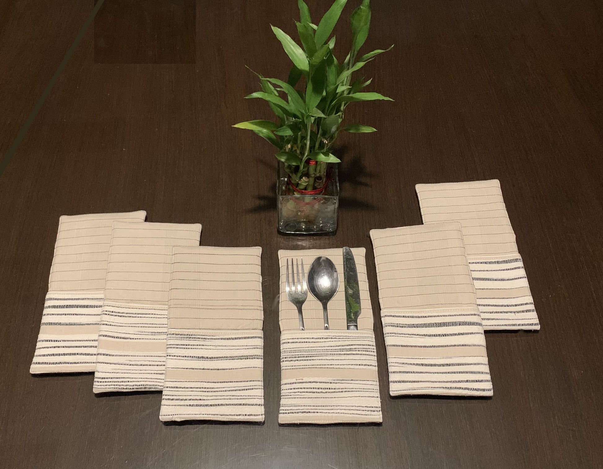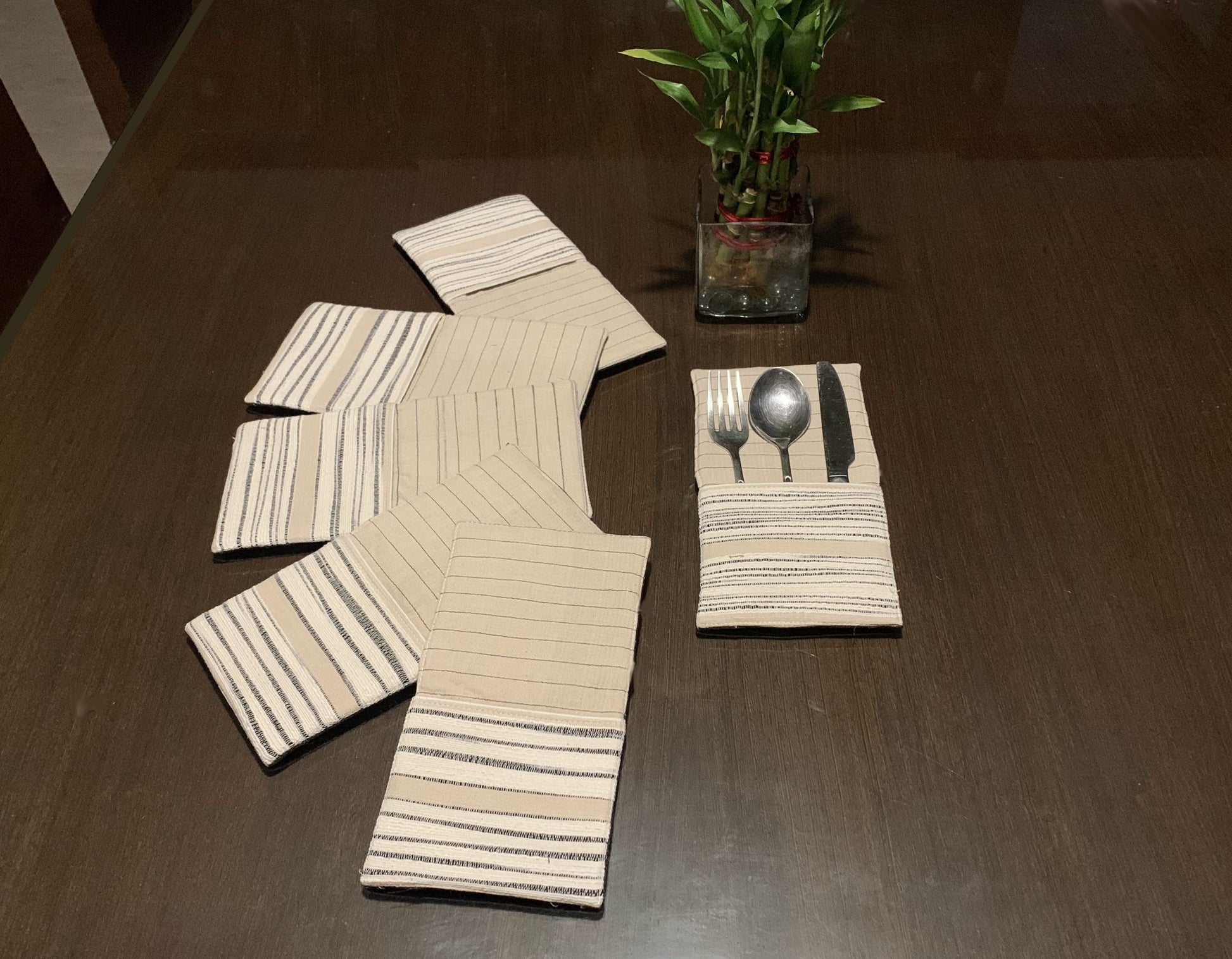 PRODUCT DESCRIPTION: These reversible handloom Cutlery pockets can add an element of style to your table setting.