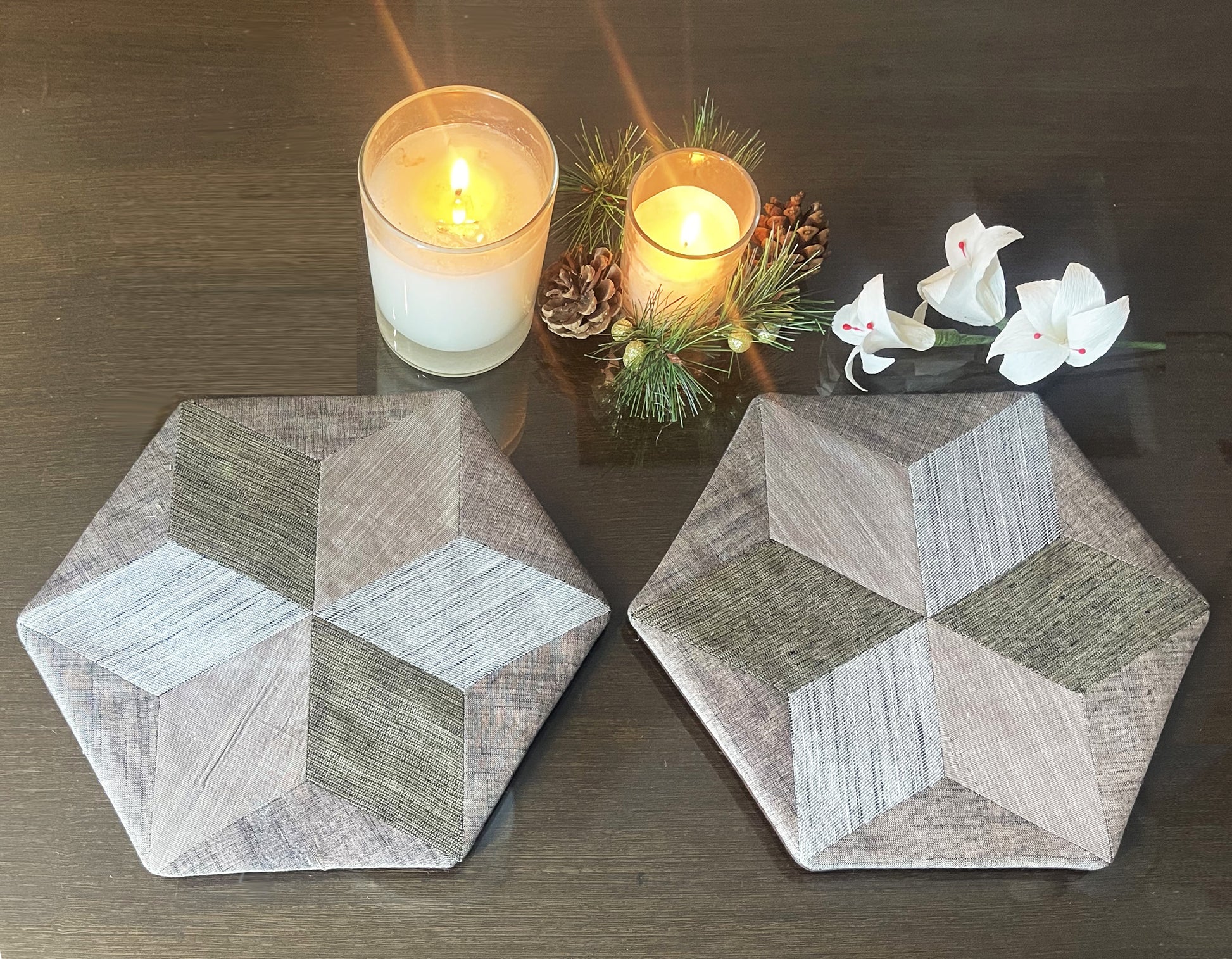 PRODUCT DESCRIPTION: Enhance your tablescape with these octagonal patchwork Trivets and protect your table tops in a stylish way. This is another one of our efforts towards a zero-waste policy.