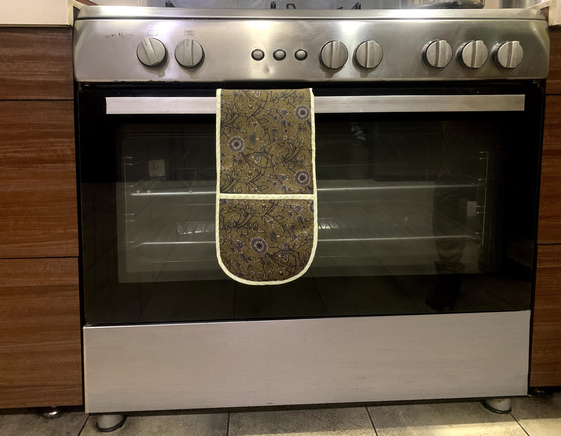 PRODUCT DESCRIPTION: Olive floral Double Oven Mitts can come in handy to manage your ovenware or any hot utensils.