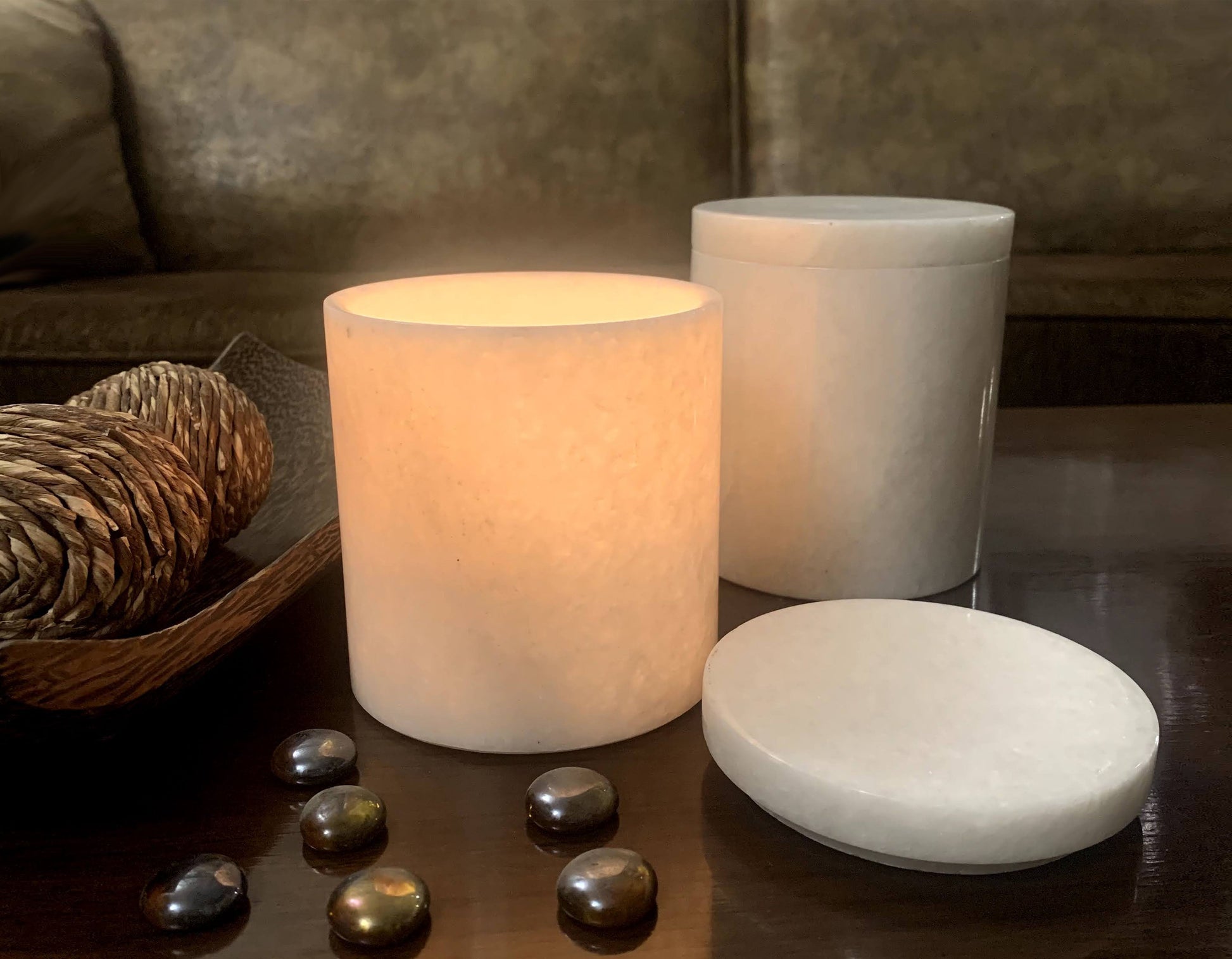 PRODUCT DESCRIPTION: Crafted in white Makrana marble, these Candle holders are perfect for a cosy evening. The wall thickness is just apt to emit the light and give a surreal effect.