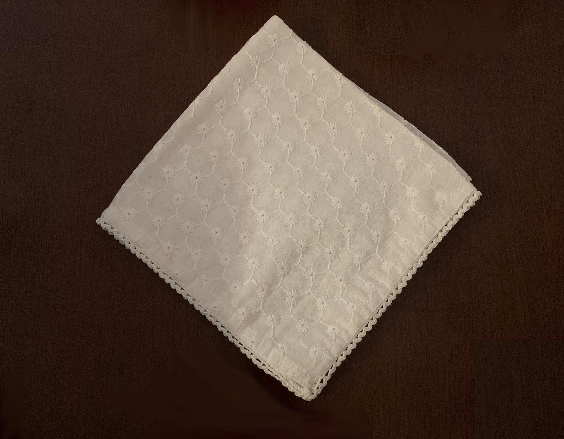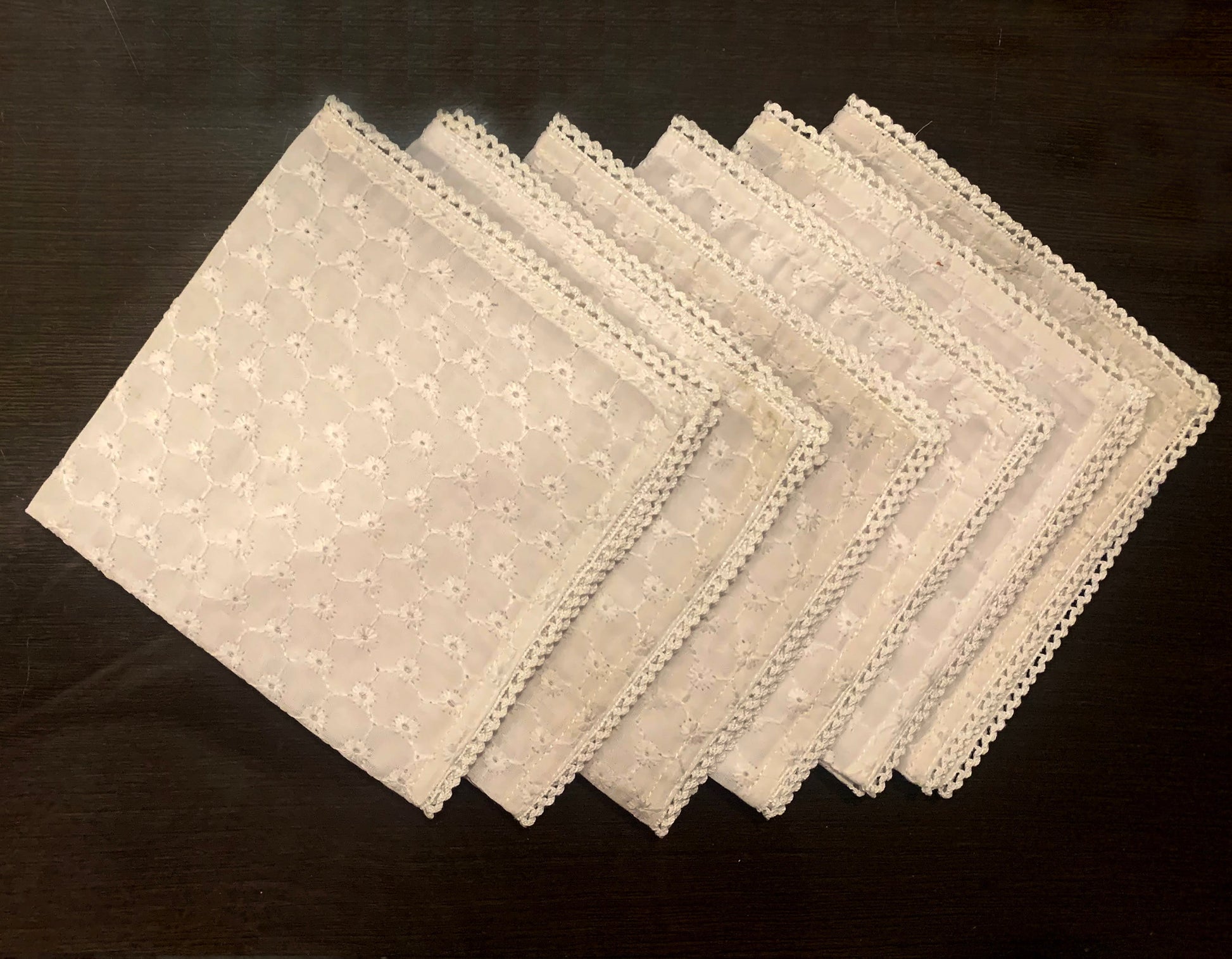 PRODUCT DESCRIPTION: Tea time white schiffli napkins with lace trimming.